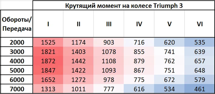Да и максимальная скорость Триумфа будет ниже, так как максимальная мощность его ниже.