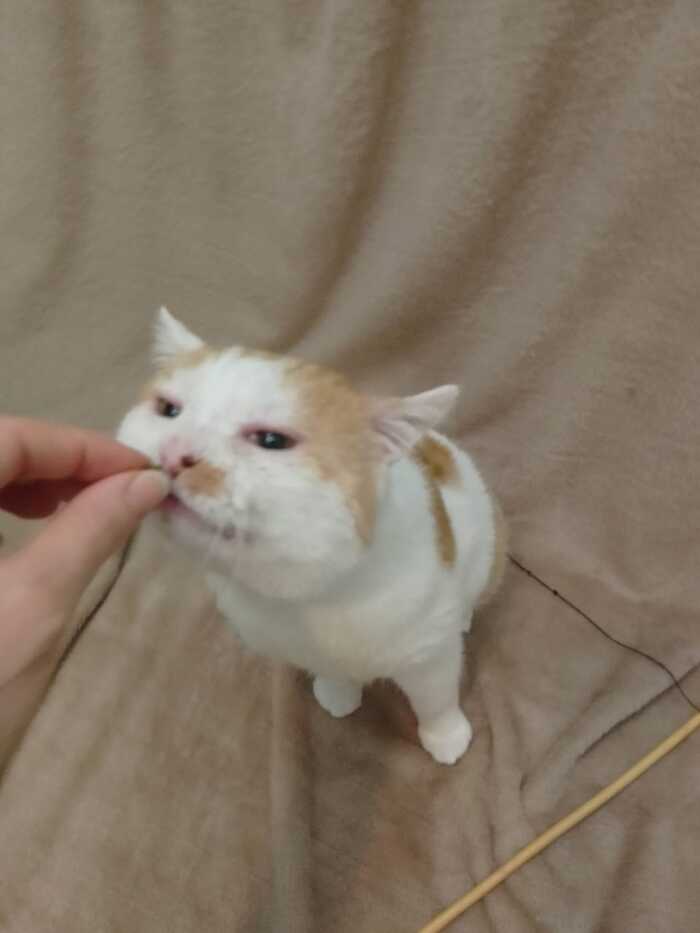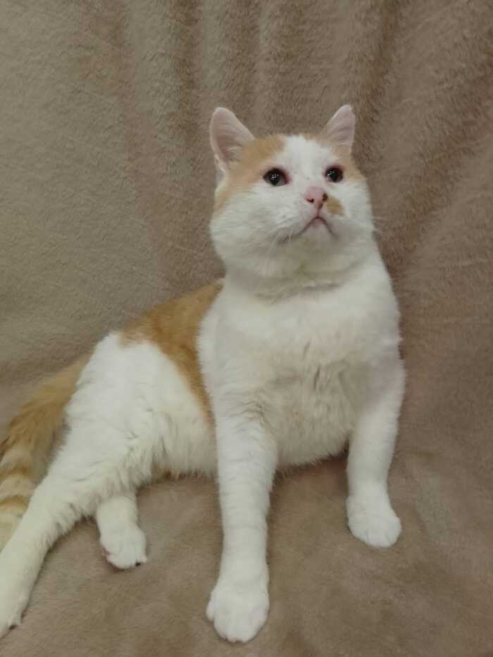 Сейчас он подлечился, кастрирован, привит, примерно 5-6 лет, очень воспитанный, к лотку приучился с первого раза, но с другими животными к сожалению не ладит, ему можно жить только одному..,носительство вик, в остальном совершенно идеальный и беспроблемный котик, есть хронические недуги, но у кого их нет), и они совсем ему не мешают и не обременяют, смешной колобок с щёчками принесёт вам только радость))