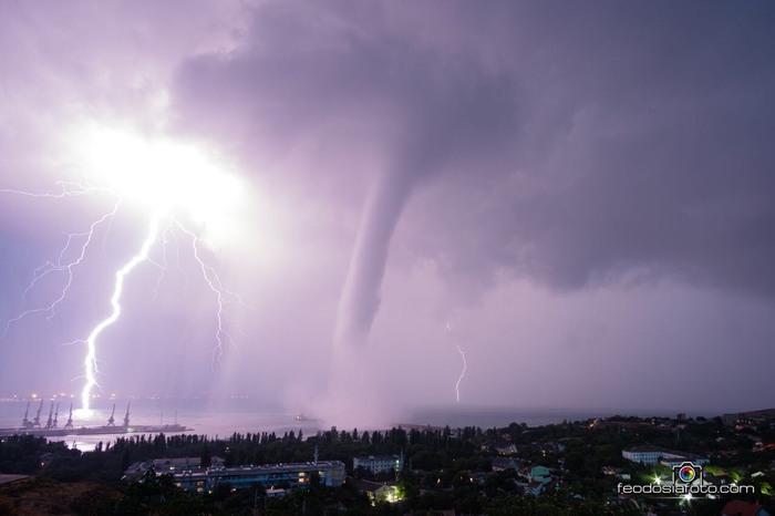 «Погодка в Феодосии нынче отличная. Лёгкий сентябрьский ветерок колышет арматуру, мимо пролетают птицы, мелкие домашние животные и дети до 8 лет», - иронично пишет на своей странице феодосиец Андрей Шелякин. И в подтверждение своих слов выкладывает фото торнадо, которые пользователи тут же комментируют: «завораживающе и прекрасно», «открылись ворота ада», «чужие сосут море из нашего залива…».