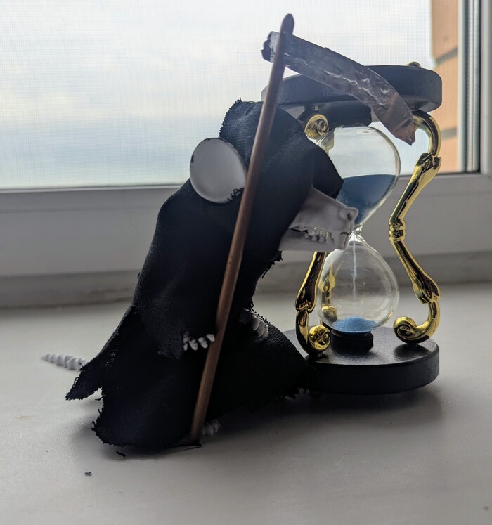 Надо ещё лезвие на косе переделать, заколку заменить на "брошь", а также планировал глаза сделать светящимися