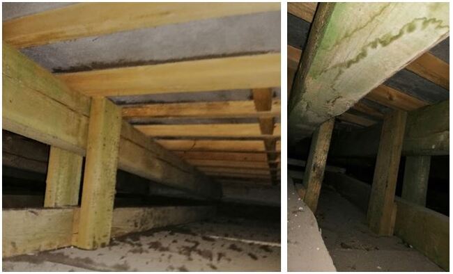 Вышеописанные дефекты, связанные с нарушением тепло-, паро- и гидроизоляцией, нивелируются хорошей проветриваемостью кровли, которая способствует выводу влаги, в результате чего, разрушения деревянных конструкций происходит крайне медленно, тем не менее, не смотря на относительно стабильную ситуацию, данный дефект необходимо устранить при последующих капитальных ремонтах, чтобы предотвратить прогрессию разрушения древесины и существенные теплопотери здания. Прогнозирование усугубления ситуации не представляется возможным, т.к. чем сильнее будет разница температур в зимний период времени между наружным воздухом и кровельным пространством, тем сильнее будет конденсат и прогрессия разрушения древесины и теплопотери. Фактически можно утверждать, что теплоизоляция не работает.