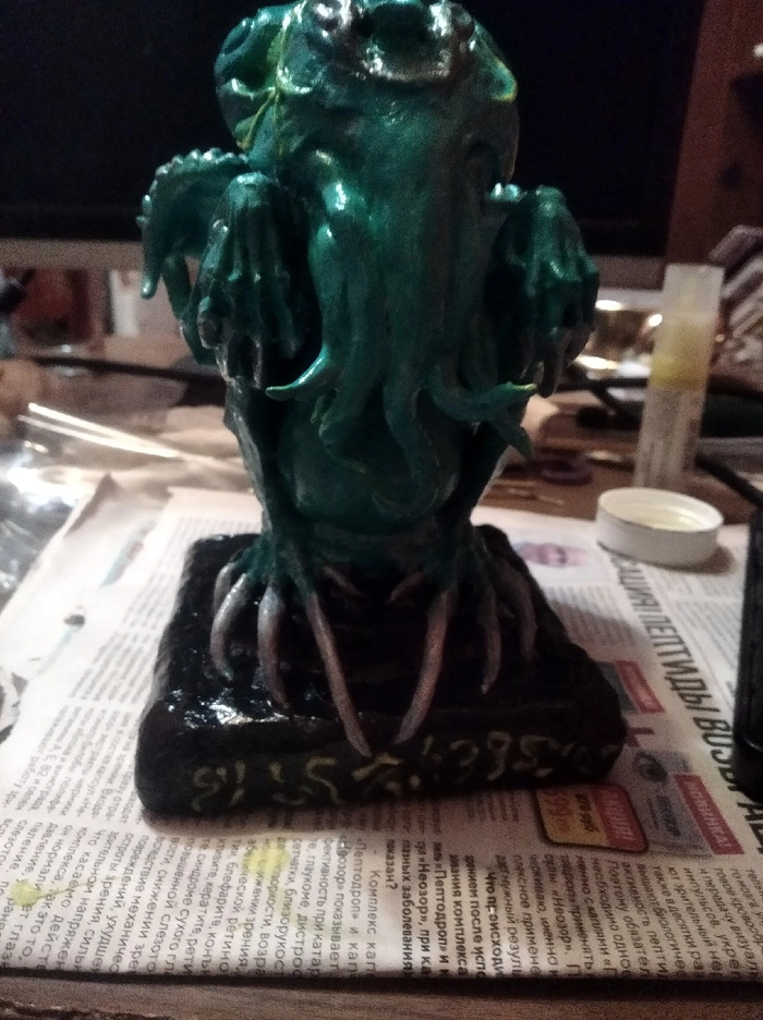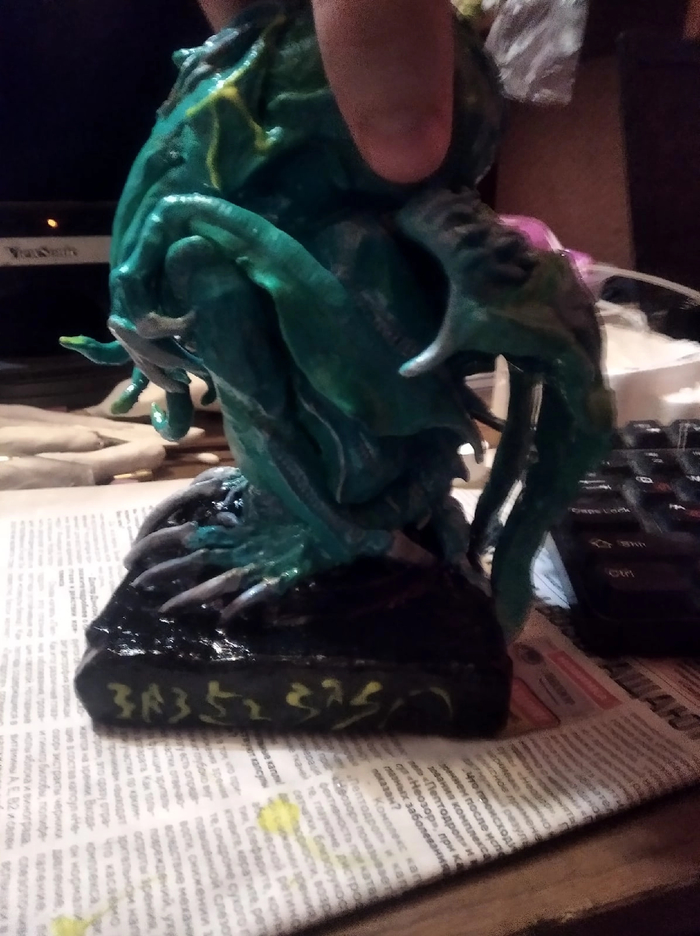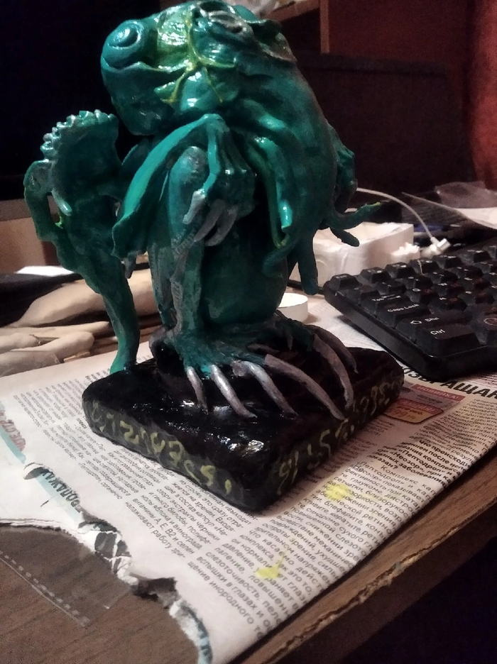 Ктулху из полимерной глины. Высота 275мм, светится в темноте, весит как кирпич. К обозрению