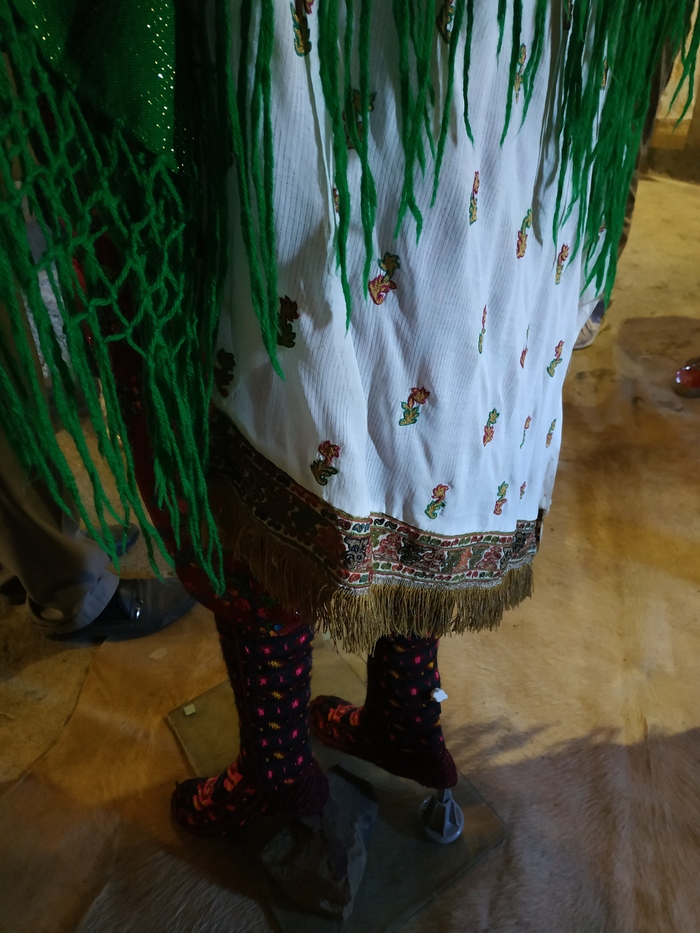 Делают его из персидской парчи(забыл как называется) и передают по наследству. Причем даже персидские вельможи столько парчи не носили. А местным мужикам приходилось хоть тресни но обеспечить своей жене/дочери материал. Ну вот, самое древнее платье у них в селе - 18 века.