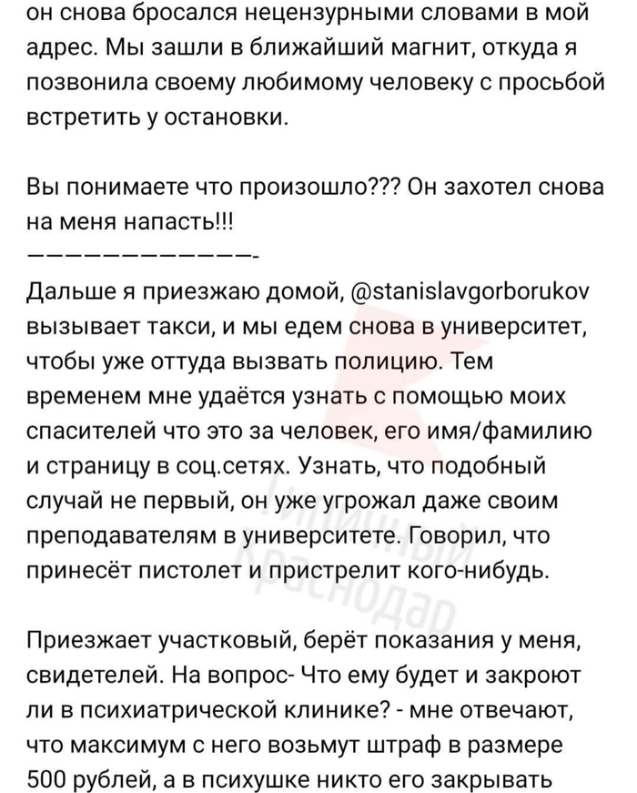 на вопрос одного из парней, почему флаг не может висеть на двери комнаты, комендант ответить не смогла. Женщина отметила, что сдирает символы не просто так, Редькин (проректор по воспитательной работе и социальным вопросам КубГУ) дал ей это задание.