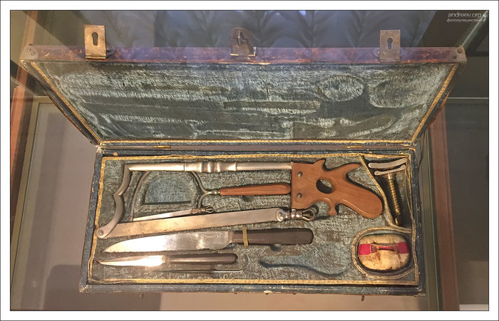 Ну а для всех остальных будет интересно посмотреть картины, старые рисунки и карикатуры на Наполеона и Ко, ужаснуться походному хирургическому набору и скудным лекарствам.