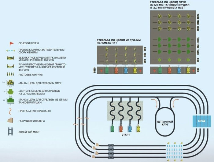 Состязания очень разнообразные, например: «Соколиная охота» – соревнование расчетных беспилотных летательных аппаратов; «Глубина» – конкурс среди военных водолазов; Военно-медицинская эстафета; «Полевая кухня» – конкурс между специалистами продовольственной службы; «Эльбрусское кольцо» – соревнуются горные подразделения, и т.д. А завершает всё кремовая розочка на торте – Танковый биатлон.