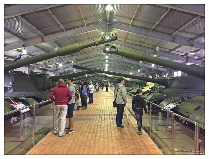 Вырулив обратно на шоссе, увидели огромную пробку в противоположном направлении. Очевидно, в субботу народ выезжал за город. До Москвы оставалось всего около 70 км, времени было много, и мы решили свернуть на Кубинку, в Бронетанковый музей. Это один из крупнейших в мире музеев, где собрана бронетехника различных видов и исторических периодов.