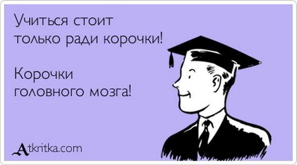 Не, ну конечно, гораздо лучше протирать джинсы пять лет ничего не делая в гавно-ВУЗе, проплатив сессии и плеваться на систему образования. А то что для кого-то в наше время образование является, в первую очередь целью этого самого образования (а не корочка и тп) - это что-то из зоны фантастики для этого типажа. На мой взгляд, здесь ноги растут даже не от интеллекта, а от мотивации. Если нет мотивации - то нету и смысла в таком образовании (ах, ну да, корочка для подпорки стола и собственного эго). И влечет это уже за собой, в последствии, как итог, разницу в интеллекте, ибо образование (хорошее образование) нацелено, в первую очередь, научить думать, а уже следом идет прикладной к будущей профессии характер. Обобщение пункта - образование "для галочки".