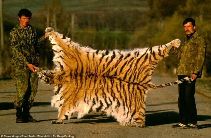 13. Браконьеры гордо позируют со шкурой сибирского тигра.