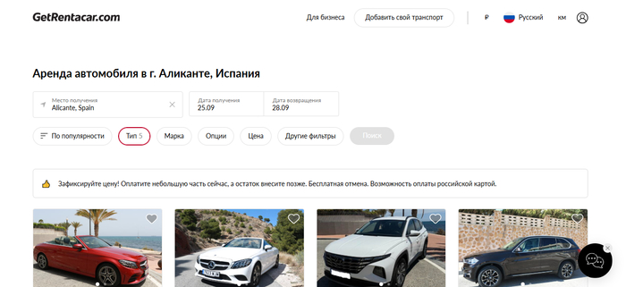 2) GetRentACar — гибкий агрегатор, который помогает «поймать» лучшую цену под ваши параметры