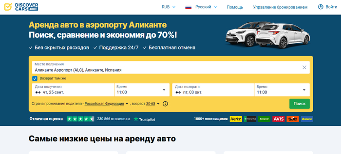 3) DiscoverCars — удобный поиск, понятные фильтры и детальные карточки условий