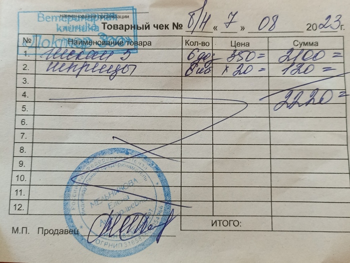 Потрачено 2220 руб. (введение сыворотки Гискан5)