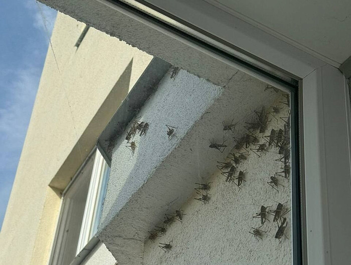 Сегодня пользователи соцсетей сообщают, что множество насекомых в эту жару видели на стенах и окнах зданий в Солнечном, Юбилейном, Заводском, по всему городу. И до Энгельса они доскакали.