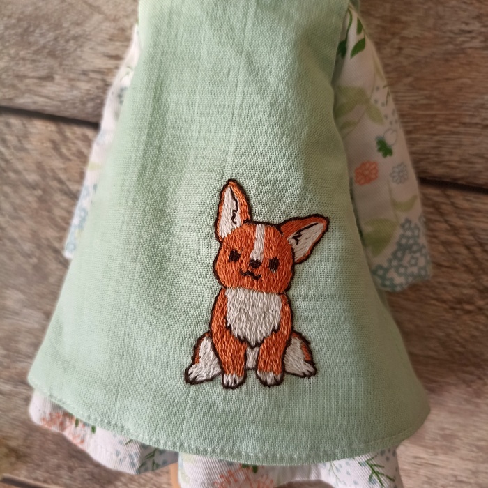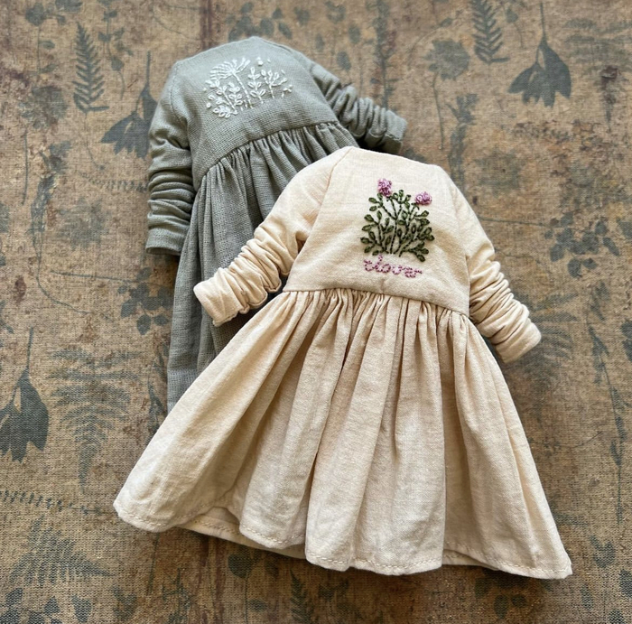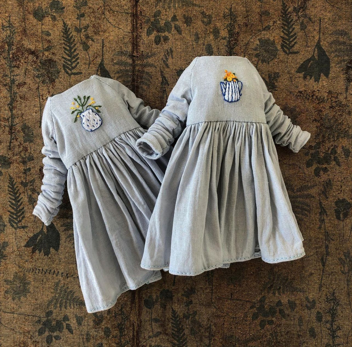 И вот - последняя парочка) здесь я постаралась "подружить" платье и сарафан, вышила листочек в серой цветовой гамме основного платья)