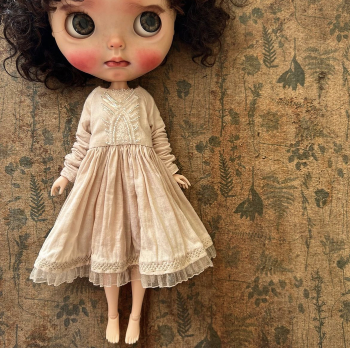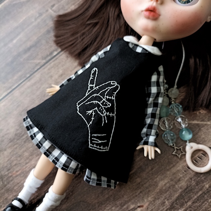Нетфликс, конечно, молодец - так успешно пиарит свои сериалы с помощью тиктока)) но этот тренд активно прошел в блайзо- , да и вообще - кукольной сфере, что надоел до смерти, однако, под конец адиотажа, когда он уже практически кончился, до меня дошло, как я могу выразить его в моем собственном видении) ну, вот так и получился сарафан с Вещью