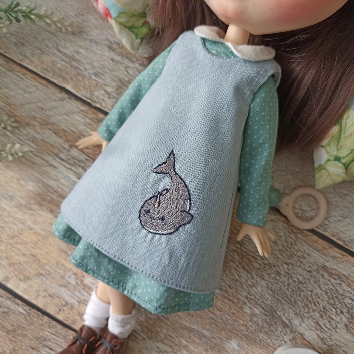 Тут на сарафане разместился малыш-нарвал, ну мило же вышло?) Я довольна