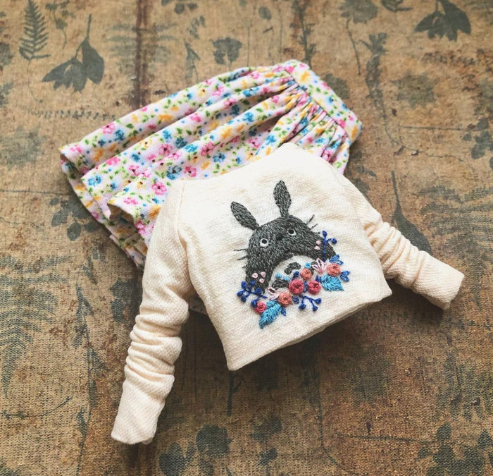 Прошлый пост закончился тем, что я пробовала вышивать, и вот несколько нарядов, где я использовала вышивку))