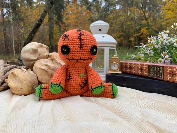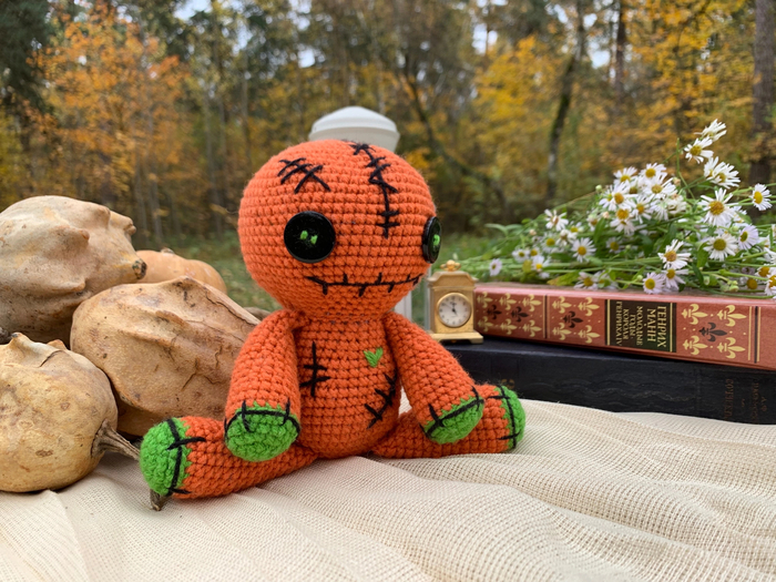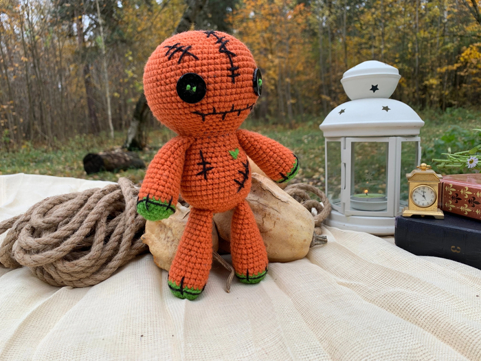 Описание Куклы Вуду я изменила, только голова такая же, как в самой первой ее версии. Описание тела было взято от другой игрушки, а вот руки и ноги придумывались с нуля.
