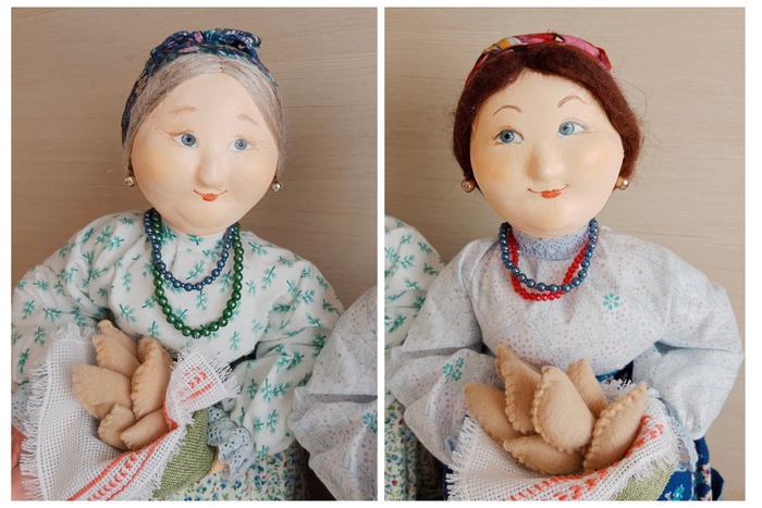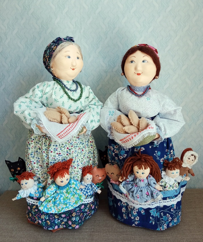 Тем более что две головы были сделаны ещё при работе над первой бабулькой. Не пропадать же добру Так появились ещё две куклы-бабушки. И они тоже не просто для услады глаз)