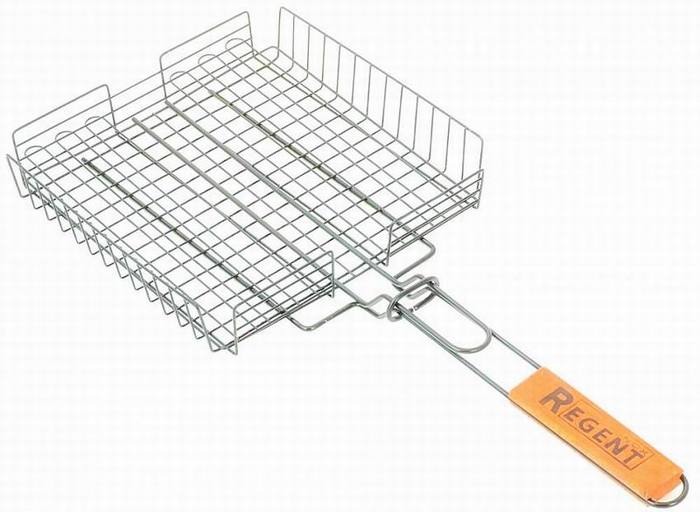 Одно из самых распространенных и доступных средств для приготовления мяса на углях. Продается от заправок до дачных магазинов. Качество решетки может варьироваться от одноразовой жестянки до качественной нержавейки. Цена также порадует многих, так как купить такую решетку можно начиная от 300 рублей и дороже. Готовить на ней довольно просто: положили готовое мясо, прижали второй половиной решетки и переворачиваете до готовности. Но у метода готовки на углях есть существенный недостаток: необходимо постоянно следить за количеством углей и их жаром. Уголь может воспламеняться от капающего жира, а может потухнуть и придется раздувать заново. То есть пристальное внимание и постоянная работа. Также надо признать, что приготовление на углях- это маркая работа и неизбежная стирка, если не хочется пахнуть дымом после. Помимо этого, решетка не всегда плотно прихватывает мясо, и оно может выскользнуть при переворачивании. Кроме того, тонкие прутья решетки врезаются в продукт и его потом приходится отрывать от горячего металла. Ну и существенный недостаток, который проистекает из метода готовки: развести огонь можно только вне дома.