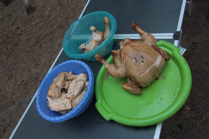 Так как у нас был стационарный мангал с трубой, ветер не раздувал лишний раз угли, а сверху мясо не остывало так быстро, как это было бы на обычном мангале.