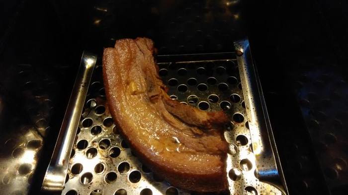 Мясо готовится привычно, чуть дольше, чем на сковороде или газовом гриле, но зато получается с дымком. Вот за этот аромат можно даже простить последующую стирку одежды - все-таки мясо, приготовленное на углях, обладает своей притягательностью. Но угольная пыль, пепел, возня с розжигом и поддержанием постоянной температуры - это минус данного метода готовки. Что касается результата, то мясо получается отличным, но не имеет выраженного рисунка решетки.