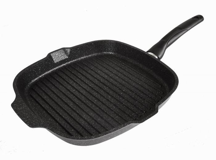 Если хочется мясо на гриле, а дачи нет или на улице совсем мрачная погода, то выручит сковорода-гриль. Первое, что понравилось - это квадратная форма. Есть модели с крышкой, но я взял без нее. Размер сковороды 28х28 см, поэтому любой стейк или колбаска легко помещаются. Сковорода сделана методом отливки из алюминия, толстостенная, поэтому готовить на ней одно удовольствие. Кроме того, нанесено антипригарное покрытие, поэтому и отмывать ее после не составит особого труда. Полоски для характерного рисунка хорошо выдаются над дном и мясо получается действительно вкусным и красивым. В случае походного использования крайне рекомендую взять маленькую походную газовую плиту, тогда время до начала приготовления сокращается до пары минут: распаковать, зажечь плиту и положить мясо на сковороду. То есть сковорода-гриль является универсальным решением для приготовления стейков или колбасок как дома, так и на природе. Минус, пожалуй, только один - больше двух нормальных стейков за один раз не пожаришь.