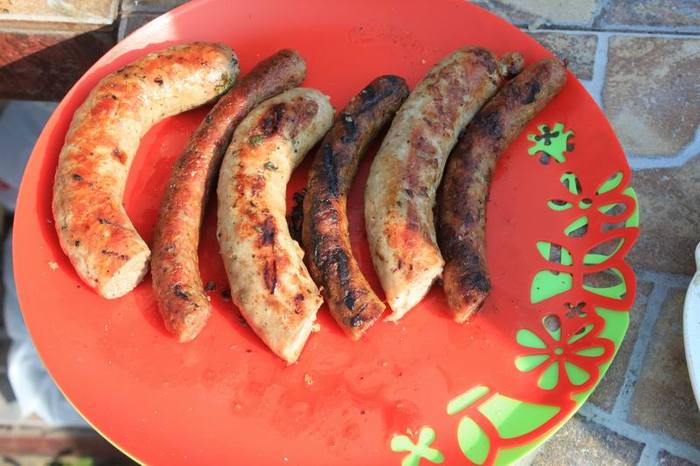На колбасках видно, что решетка гриль не оставила рисунка совершенно из-за узких ребер.