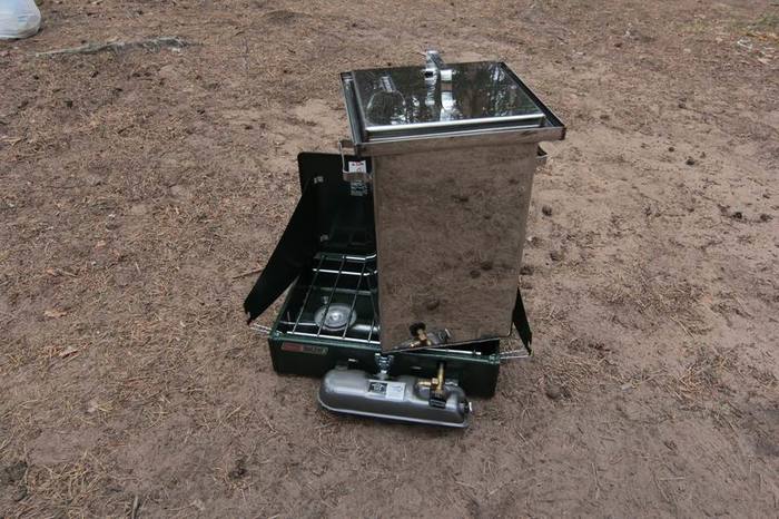 Газовый гриль занимает места чуть больше мангала, зато лишен недостатков оного. Например, не надо возиться с дровами или углем, температура задается рукояткой, как на плите дома. Расход газа так мал, что одного 27л баллона хватит более, чем на сутки безостановочной готовки на максимальной мощности. То есть в режиме выходного дня, баллона должно хватить на весь летний сезон. Готовить можно как на себя любимого, так и на большую компанию. Ну и большой плюс в том, что стекающий жир собирается в специальном подвешенном ведерке (соблюдается чистота), а две решетки легко помещаются даже в узкую посудомоечную машину.