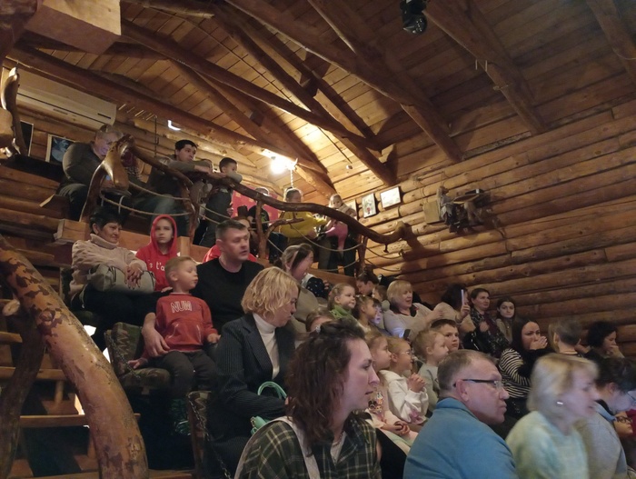Вот же сам зал, в котором проходят спектакли, мы собирались посмотреть на кота с чемоданом, но сын испугался, что так много людей и мы пошли в итоге пить чай)) в этом зале много всего интересного, многие экспонаты разговаривают и шевелятся