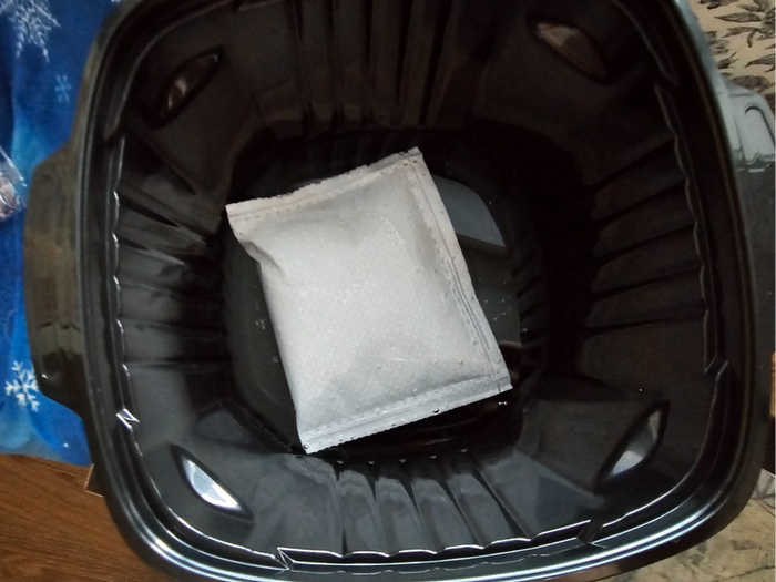 Заливаем водой по ограничительные линии, добавляем химпакет и закрываем все крышкой.