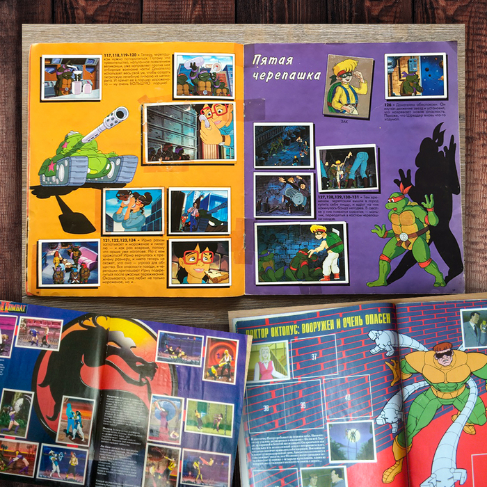 У меня такого альбома не было. Зато у меня был журнал для наклеек «Черепашки Ниндзя», а у сестры был альбом «Барби». Потом ещё у меня появились альбомы: «Мортал Комбат», «Динозавры» и «Человек-Паук».