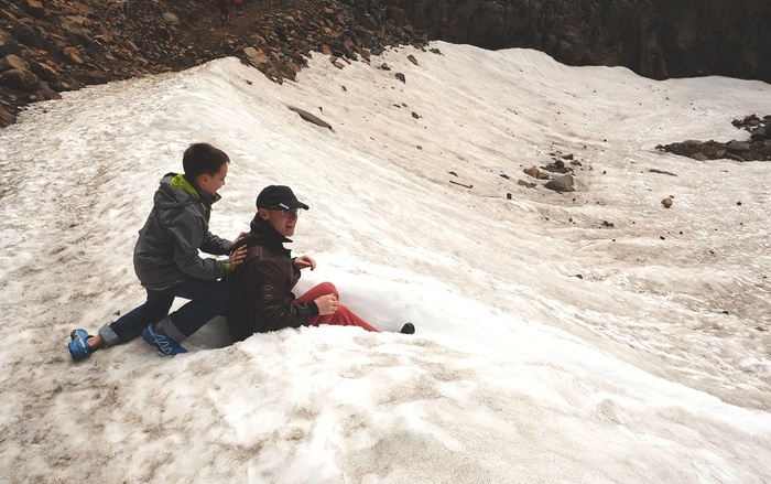 На подъемнике мы добрались до базового лагеря, откуда летом в треки уходят туристы, а зимой катаются горнолыжники. Там начинался большой ледник. Сначала мы думали сделать три фото и убраться восвояси, но для того, чтобы снимок получился красивым, пришлось влезть на язык льда, за которым обнаружился удобный спуск – грех не пройти еще три шага. За тремя шагами последовало «а давайте вот до того красивого валуна!» - ну, вы поняли…
