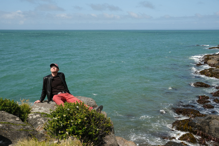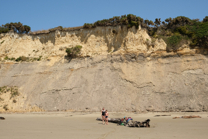 Мы были единственные, кто рискнул окунуться в неспокойные и холодные волны Тихого океана. Отошли подальше от туристов, прыгающих вокруг камней Моераки, и расположились на огромном сухом дереве, которое когда-то сорвалось с высокого обрыва и, отполированное океаном, было выброшено обратно на сушу.