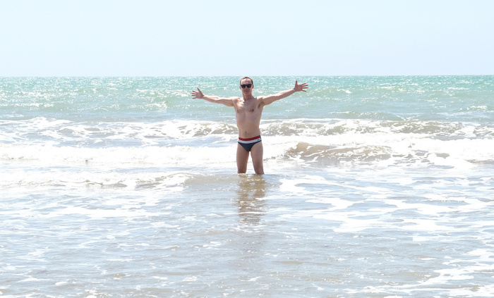 Алеша рванул в большой заплыв, мы с Женей, взявшись за руки, вбежали в волны, поплескались там, вереща от холода, и выскочили обратно, Богдан, подвернув штаны, намочил пятки.