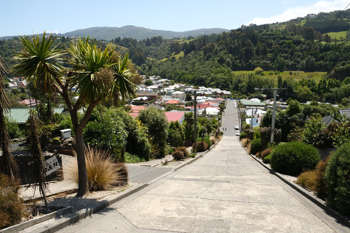 Нас ждал город Данидин. А в нем Болдуин-стрит. Перед поездкой мы основательно изучили достопримечательности Новой Зеландии, которые нужно посетить непременно, если, конечно, ты хоть немного уважаешь себя, как туриста. Болдуин-стрит – одна из них. Улица вошла в Книгу Рекордов Гиннеса, как самая крутая (в буквальном смысле) в мире. Кроме нее в городе и смотреть особо не на что. Разве что на приятные глазу маленькие разноцветные коттеджики, вызывающие чувство уюта и покоя.