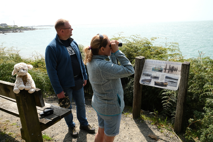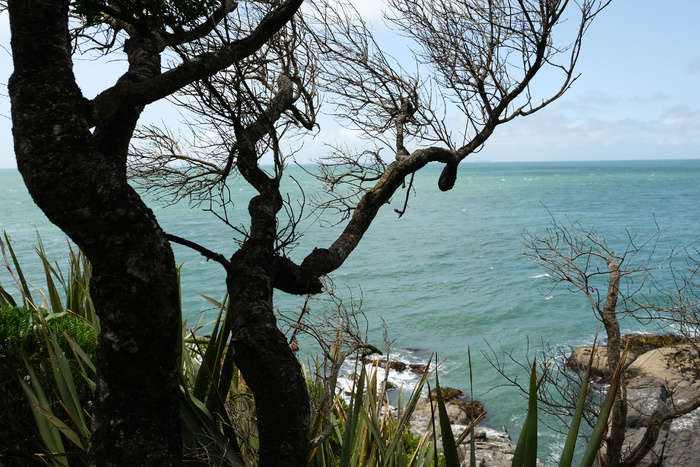 Вдоль утесов тянулась непроходимая линия кустарника – наверное, чтобы туристы вниз не лезли, туда, где тюлени и чайки на скалах. Но через небольшой прогал мы все-таки выбрались на простор. Как раз в этом месте небольшой мыс вдавался в море. Мы стояли, смотрели вдаль. За спиной вздрагивали от ветра кривые деревья. Под нами на скалах кричали чайки. До горизонта градиентом от лазури в синеву безучастно лежал океан.