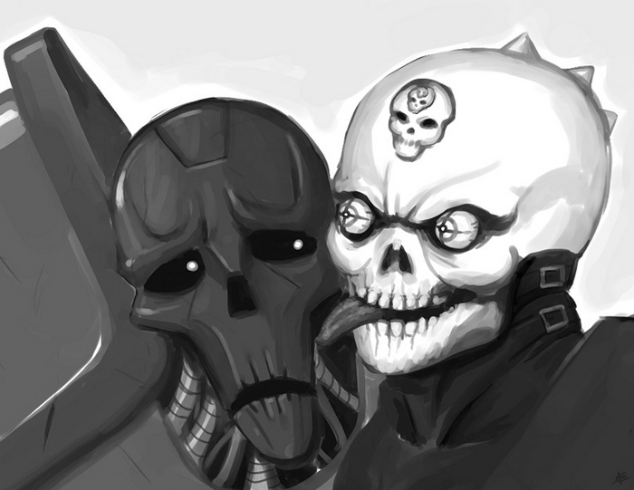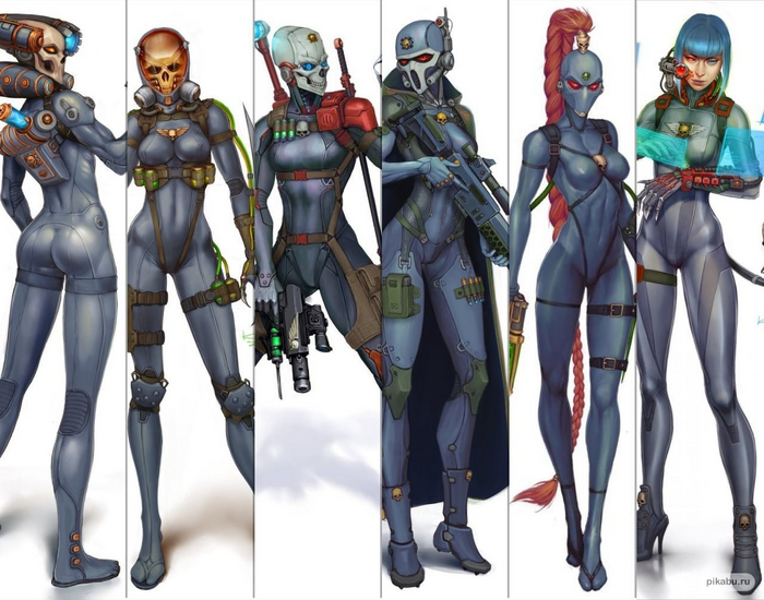 Естессно, одеты и экипированы они тоже по последнему слову техники. Комбинированные пистолеты с несколькими режимами стрельбы, перчатка режущая броню как бумагу, отравленная нейротоксином, от эффективности которого тираниды исходят слюнями и хотят такой же. До кучи гранаты, бомбы, и ещё всякого, по вкусу.