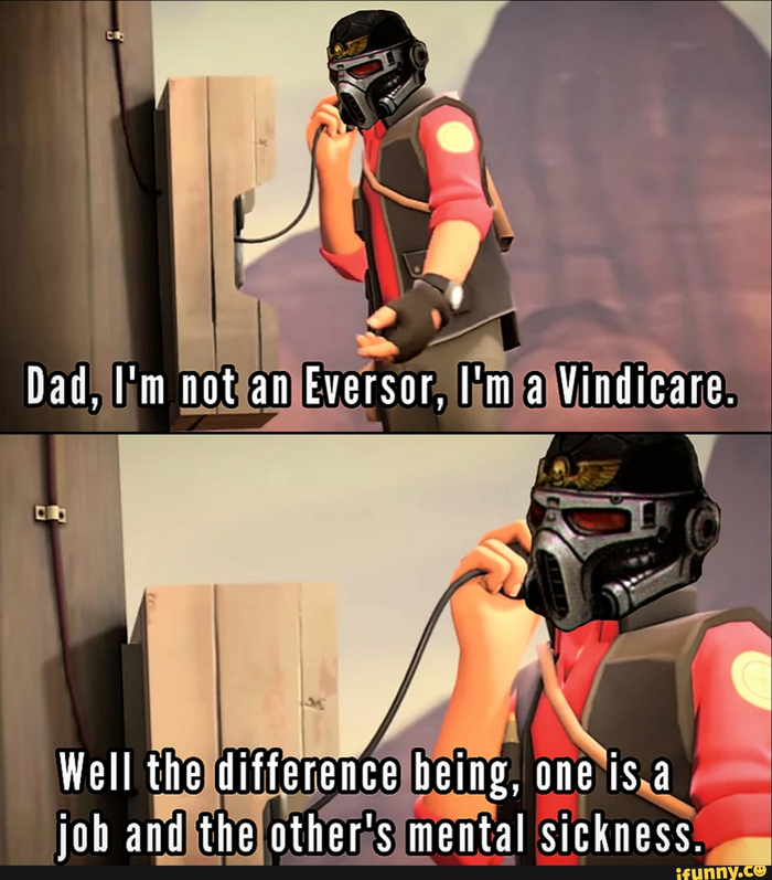 Бать, я виндикар а не эверсор. Разница в том, что первое это работа, а второе - психическое заболевание.