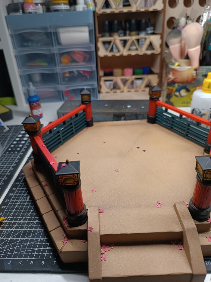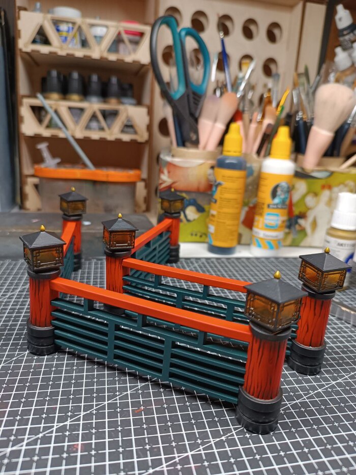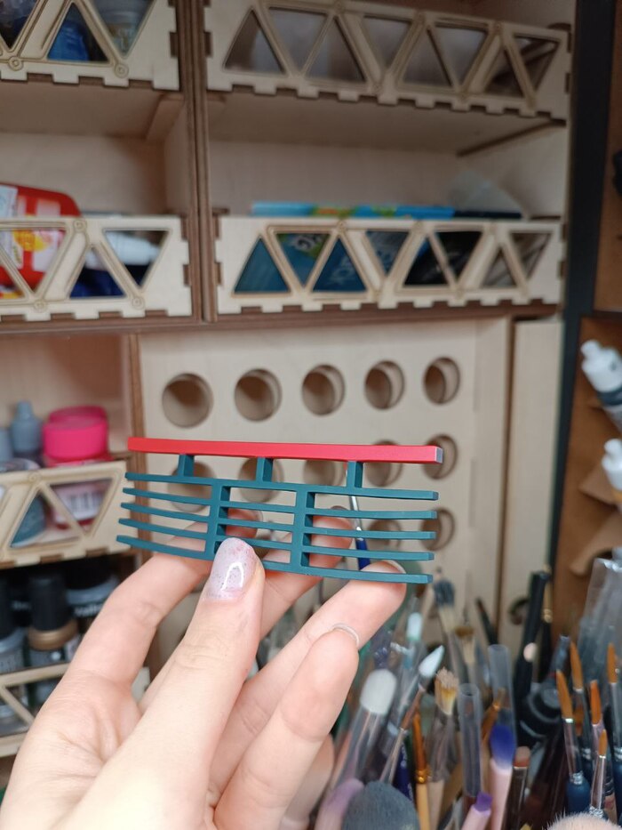 После была окрашена подставка и склеена вместе со столбиками и забором