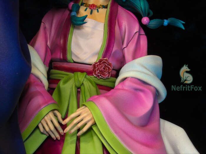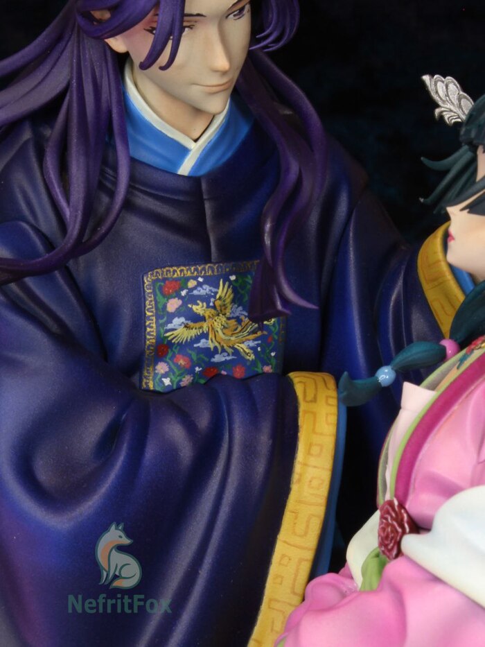 Отдельно уделили внимание глазам и мелочам на лице, а на груди у Жэньши даже прорисовали миниатюрный орнамент, имитирующий вышивку — тончайшей кистью под лупой!