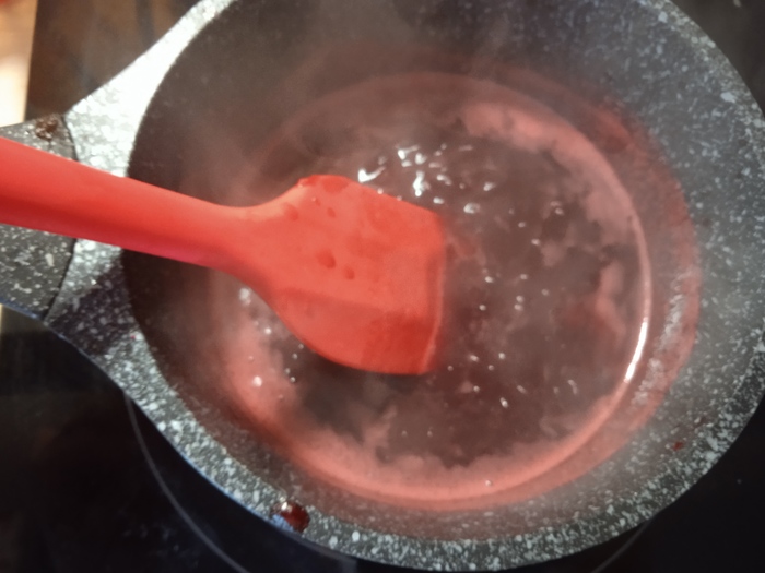 Далее переходим к агару. На 300 мл именно неразбавленного сока смородины, нужно не более 5 гр агара. Я добавила больше, потому что сок разбавлен водой. Напомню, во многих фруктах и ягодах содержится пектин, поэтому какие-то могут сильнее застывать, какие-то меньше, в первый раз придётся экспериментировать и регулировать количество самостоятельно.