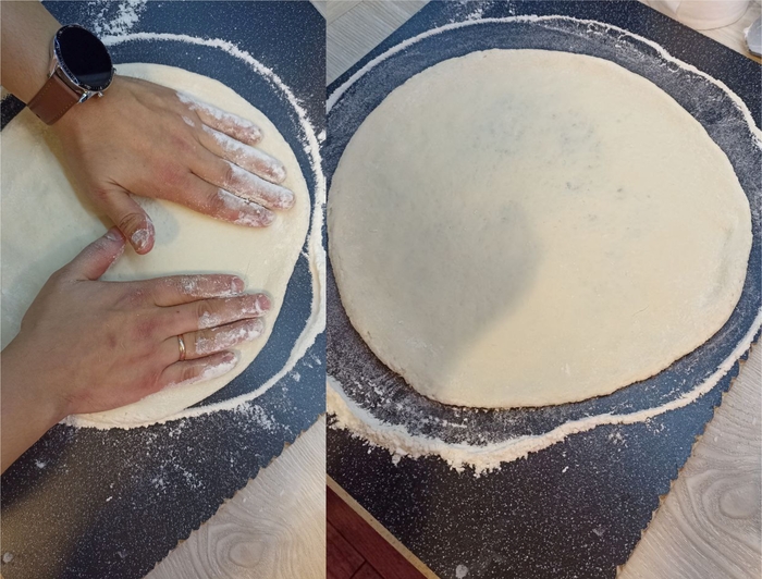 Растянули - встряхнули круговыми движениями поверхность с тестом