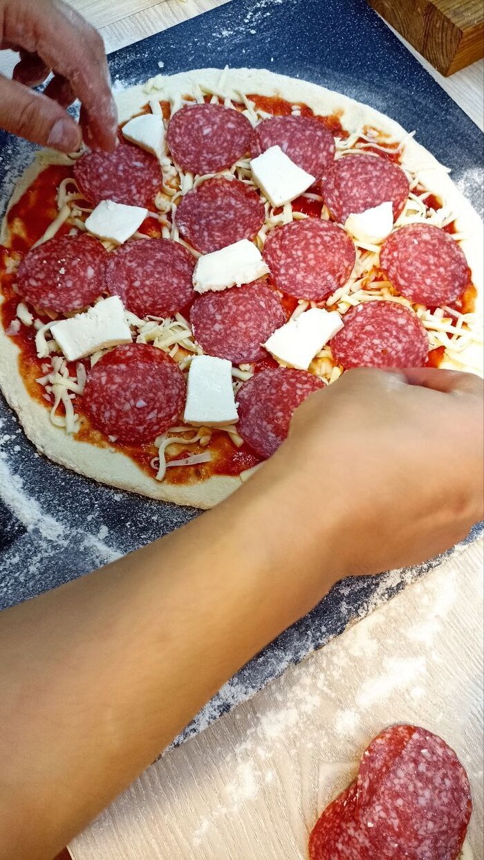 *У меня камень 40 см, поэтому и пиццы я делаю на 32-36 см