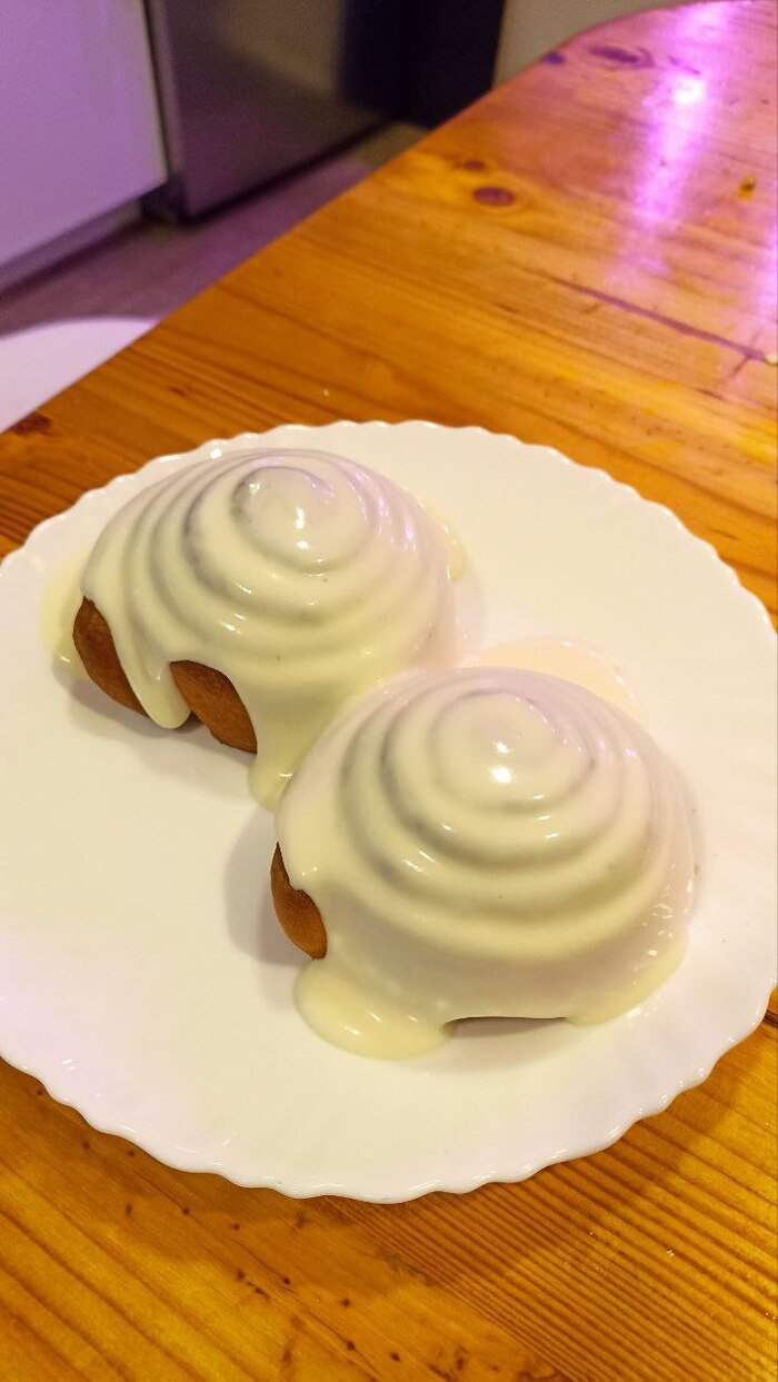 Да, и на десерт (куда ж без него) - ароматнейшие коричные циннабоны со сливочным соусом:
