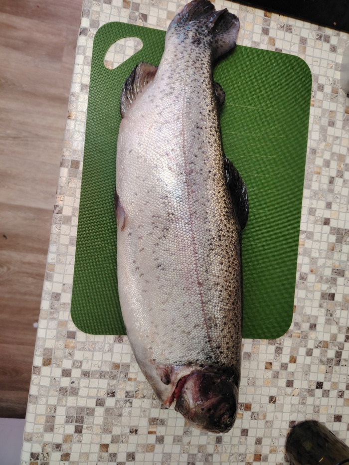 Здравствуйте. Сегодня будем буржуйствовать. Коллеги подсказали форелевую ферму в области, рпз в неделю под заказ доставляют свежую рыбу в город. Заказал. Цена 900 рублей за кило.