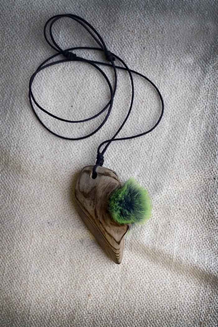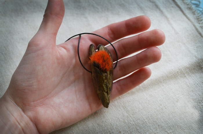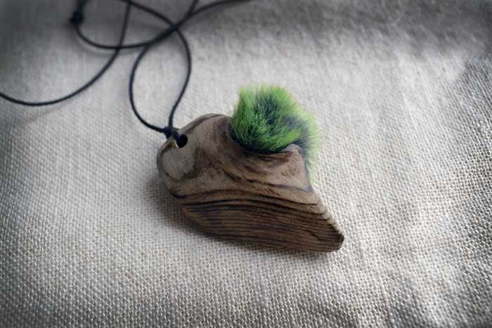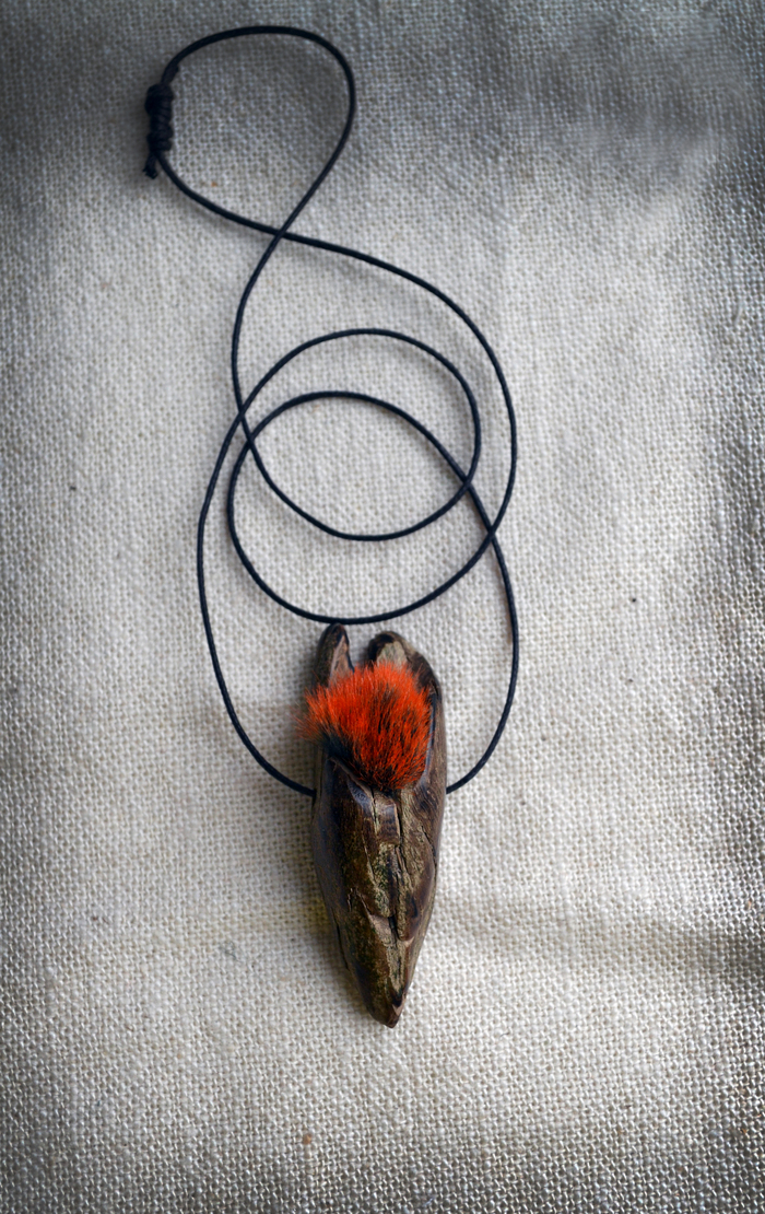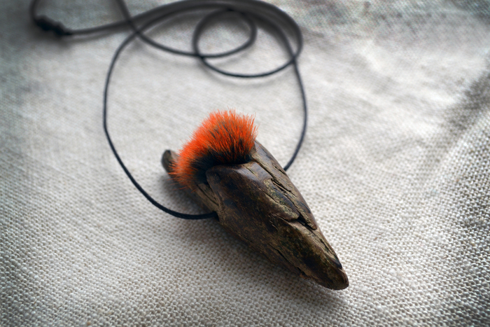 Вторая часть о кулонах в основе которых всё те же речные деревяшки, но уже на шнурке и с добавлением меха.