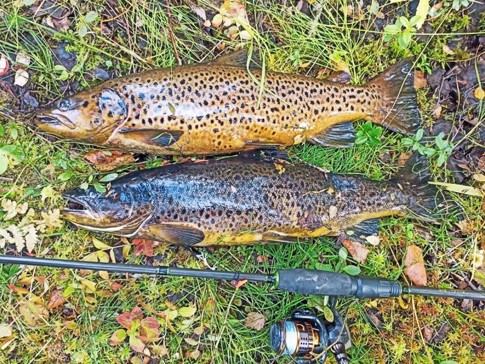 На выходе с ямы брëвнышко, цепляю за него, тяну на себя, чтобы аккуратно оборвать, перевязываюсь,меняю силикон цветами, и так обрываюсь четыре раза. несколько забросов, один два выхода и зацеп, хорошо что зацепы на выходе с ямы, поэтому не пугают рыбу, удивляло то что она выходила раз за разом, обычно для крупной форели это не типично. Я потихоньку накаляюсь и матерюсь сквозь зубы, но все ещë не сдаюсь, рыба явно на стороже, выходит, но схватить силикон явно не решается.закуриваю, съедаю несколько долек шоколада, успокаиваюсь сам, и даю немного успокоиться рыбе. Открываю кошелëк с блëснами и ставлю одну из любимых колебалок. Заброс. Удар! Передышка явно пошла рыбе на пользу, схватила сразу и уверенно.как же меня пробило от адреналина! Внутри все дрожит, но голова работает четко, не тороплюсь, рыба сопротивляется жëстко, условия для меня не самые комфортные, пространства где можно погулять рыбу мало, вначале ямы завал из брëвен, где она пряталась, и куда изо всех сил пытается уйти, справа какие-то ветки в воде. Надеюсь на прочность шнура, он совсем новый, вторая рыбалка, брался под голавля, после нескольких обрывов, когда я перевязывался, он точно нигде не перетëрт. Рыба ,то мотает головой,то пытается уйти на свечки, то просто изо всех сил давит в укрытие.Не знаю сколько прошло времени, я просто выпал из реальности, в эти моменты время не имеет значения, ни что не имеет значения...