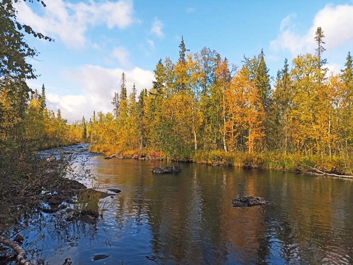 Постепенно стрелка переваливает за полдень, потом и за трëх часовую отметку, поклëвки, выходы и поимки следуют друг за другом, рыбка в основном не крупная,200гр. плюс, минус, но и откровенной мелочи нет, слил в коряжнике одну немного за пол кило, и ещë одна чуть поменьше отвалилась у ног, это не та рыба за которой я ехал, но она не давала мне скучать. На одном из очередных омутков решаю поставить силикон и пробить ямку силиконом. Уже заканчивая проводку замечаю что со дна омутка поднимается муть. Это интересно...делаю ещë несколько безрезультатных проводок. Ничего... Закуриваю. В это время снизу, вверх по течению поднимается стайка плотвы, или уклейки, заходит на яму, и в этот момент я вздрогнул от неожиданности, а сердце бешенно забилось. Здоровенная рыбина атаковала со дна эту стайку,сложно судить насколько крупной по весу она была, думаю если и меньше трëх килограмм, то ненамного. Приседаю в кустах и начинаю судорожно перебирать коробки и кошелëк с приманками думая что же еë спровоцирует, выбор пал на риëки 50s.Смена приманки, заброс, вышла но не ударила. Следующий заброс. даю приманке заглубиться ,но слишком сильно,со дна омутка торчит ветка, хоть я еë и видел, но немного не расчитал,по закону подлости, конечно я еë цепляю🤦♂️