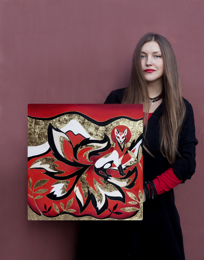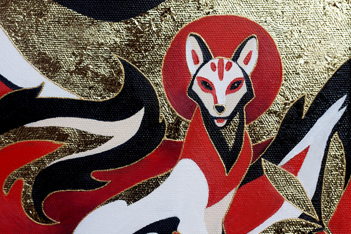 Ответ на пост «Девятихвостая лисица. Картина маслом с применением золотой потали»1